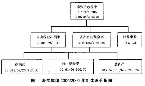 根据海尔2005、2006年度财务报告数据计算出各关键指标进行新体系分析如下图(单位:万元)。
